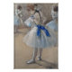 Bailarina de cinta azul. Edgar Degas. Retrato bonito en tonos marrón blanco pastel. Ballerinas con faldas blancas van a clase. Los chicas enderezan sus vestidos. Reproducción de obras de arte famosas de dominio público.
