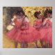 Título Deutsch: Tänzerinnen en Rosa zwischen den Kulissen Año 1884 Técnica Deutsch: Öl auf Leinwand Dimensions Deutsch: 38 × 44 cm... Es considerado como uno de los fundadores del impresionismo aunque rechazó el término, y prefirió ser llamado realista. Magnífico dibujante, se identifica especialmente con el tema del baile, y más de la mitad de sus obras representan bailarines. Éstos muestran su dominio en la representación del movimiento, al igual que sus sujetos de carreras y desnudos femeninos. Sus retratos son notables por su complejidad psicológica y su representación del aislamiento humano. A comienzos de su carrera, su ambición era ser un pintor de historia, un llamado por el que estaba bien preparado gracias a su rigurosa formación académica y a su estrecho estudio del arte clásico. A sus treinta años, cambió de curso y al llevar los métodos tradicionales de un pintor de historia a la asignatura contemporánea, se convirtió en un pintor clásico de la vida moderna. Degas nació en París, Francia, el mayor de cinco hijos de Célestine Musson De Gas y Augustin De Gas, banquero. La familia era moderadamente rica. Su madre murió cuando Degas tenía trece años, después de lo cual su padre y su abuelo fueron las principales influencias en su temprana vida. A los once años, Degas (en la edad adulta abandonó la ortografía más pretenciosa del apellido) comenzó su educación con la inscripción en el Liceo Louis-le-Grand, graduándose en 1853 con un bachillerato en literatura. Degas empezó a pintar a comienzos de su vida. A los dieciocho años, había convertido una habitación en su casa en un estudio para artistas, y en 1853 se registró como copista en el Louvre. Sin embargo, su padre esperaba que fuera a la escuela de derecho. Degas se inscribió debidamente en la Facultad de Derecho de la Universidad de París en noviembre de 1853, pero hizo poco esfuerzo en sus estudios allí. En 1855, Degas conoció a Jean Auguste Dominique Ingres, a quien veneró, y cuyo consejo nunca olvidó: "Dibuja líneas, joven, y aún más líneas, tanto de la vida como de la memoria, y te convertirás en un buen artista". En abril de ese mismo año, Degas recibió la admisión en la Ecole des Beaux-Arts, donde estudió dibujo con Louis Lamothe, bajo cuya guía floreció, siguiendo el estilo de Ingres. En julio de 1856, Degas viajó a Italia, donde permanecería durante los próximos tres años. En 1858, mientras se alojaba con la familia de su tía en Nápoles, realizó los primeros estudios para su obra maestra temprana, La familia Bellelli. También dibujó y pintó copias después de que Miguel Ángel, Rafael, Tiziano y otros artistas del Renacimiento, a menudo seleccionando de un retablo una cabeza individual que trató como un retrato En 1860 Degas había hecho más de setecientas copias de trabajos que incluían arte clásico del Renacimiento italiano y francés. empezar a pintar La familia Bellelli, un imponente lienzo que pretendía exhibir en el Salón, aunque permaneció inacabado hasta 1867. También comenzó a trabajar en varias pinturas históricas: Alejandro y Bucéfalo y La hija de Jefthah en 1859-60; Sémiramis Building Babylon en 1860; y Spartans jóvenes alrededor de 1860. En 1861, Degas visitó a su amigo de la infancia Paul Valpinçon en Normandía, e hizo lo primero de sus muchos estudios de caballos. Exhibió en el Salón por primera vez en 1865, cuando el jurado aceptó su pintura Escena de la Guerra en la Edad Media, que atrajo poca atención. Aunque exhibió anualmente en el Salón durante los próximos cinco años, no presentó más pinturas de historia, y su Steeplechase —The Fallen Jockey (Salón de 1866) señaló su creciente compromiso con el tema contemporáneo. El cambio en su arte estuvo influenciado principalmente por el ejemplo de Edouard Manet, a quien Degas se había reunido en 1864 (mientras que ambos copiaban el mismo retrato de Velázquez en el Louvre, según una historia que puede ser apócrifa). En el estallido de la guerra franco-prusiana en 1870, Degas se alistó en la Guardia Nacional, donde su defensa de París le dejó poco tiempo para pintar. Durante el entrenamiento con rifle se encontró que su vista estaba defectuosa, y durante el resto de su vida sus problemas oculares fueron una preocupación constante para él. Después de la guerra, en 1872, Degas comenzó una estadía prolongada en Nueva Orleans, Luisiana, donde vivían su hermano René y otros parientes. Alojándose en una casa en la Avenida Esplanade, Degas produjo una serie de obras, muchas de ellas representando a miembros de la familia. Una de las obras de Nueva Orleans de Degas, representando una escena en The Cotton Exchange en Nueva Orleans, atrajo la atención favorable en Francia, y fue su único trabajo adquirido por un museo (el de Pau) durante su vida. Degas regresó a París en 1873. Al año siguiente murió su padre, y en el posterior asentamiento de la finca se descubrió que el hermano de Degas, René, había acumulado enormes deudas de negocios. Para preservar el nombre de la familia, Degas se vio obligado a vender su casa y una colección de arte que había heredado. Dependiendo por primera vez en su vida de las ventas de sus obras de arte por ingresos, produjo gran parte de su mayor trabajo durante la década que comenzó en 1874. Ahora completamente desencantado con el Salón, Degas unió fuerzas con un grupo de jóvenes artistas que tenían la intención de organizar una sociedad de exhibición independiente. La primera de sus exhibiciones, que fueron rápidamente denominadas Exposiciones Impresionistas, fue en 1874. Posteriormente, los impresionistas celebraron siete espectáculos adicionales, el último en 1886. Degas asumió un papel de liderazgo en la organización de las exhibiciones, y mostró su trabajo en todas menos una de ellas, a pesar de sus persistentes conflictos con otros miembros del grupo. Tenía poco en común con Monet y los dem