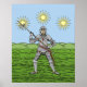 Este ilustracion original de Richard H. Fay retrata a Edward de York, vestido como un caballero con arnés de platos ingleses completos, blandiendo un poleaxe de finales de la Edad Media. Tres soles en esplendor, simbólico del fenómeno presenciado en la mañana de la batalla de la Cruz de Mortimer, brillan en el cielo de arriba.