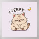 Un ilustracion que muestra una escena con un gato comicamente exhausto, jugando con la palabra "DORMIR" acortándola a "EEPY" como si el gato estuviera demasiado cansado para decir la palabra completa. Mantiene un estilo minimalista mientras se centra en la expresión y postura humorísticas del gato. El posicionamiento central del gato y el simple fondo aseguran que la atención se mantenga en el carácter gracioso y somnoliento.