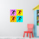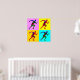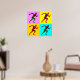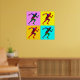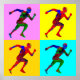 Siluetas multicolores de corredores sobre el fondo de cuadrados multicolores