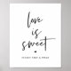 Boda Rótulo de la Mesa del Desierto, el amor es dulce, por favor tómese un aperitivo, en escritura Minimalista moderna, con temática negra y blanca. Este signo está disponible en versión descargable/ editable y en versión impresa. para el ensayo boda y felizmente después de la cena y la celebración fiesta.