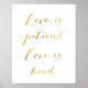 Impresión artística de El amor es paciente, el amor es amable - letras de caligrafía dorada