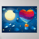 Paisaje de fantasía con forma de corazón de globo y gato, tarjeta de San Valentín.
