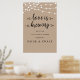 El amor se está preparando, Rústico moderno, Poster de bienvenida de la cena de ensayo Boda, con escritura negra, kraft marrón, con temas de luces de cuerda.