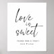 Simple "amor es dulce" diseño en fuentes modernas con un poco de corazón entre los nombres de la pareja. Excelente para las señales de favor de mesa en bodas y fiestas de compromiso. El color de fondo es el personalizable.