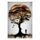 Un árbol imponente, sus raíces entrelazadas como recuerdos antiguos, guarda secretos entre las hojas doradas y rojizas. Una silueta humana observa, mientras las aves vuelan libremente, uniendo la naturaleza y el alma en un abrazo poético. Cada pincelada acuarela es un suspiro de paz, recordándonos que la vida crece en raíces y sueños.
