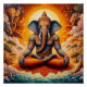 La obra representa una escena poderosa y mística que mezcla elementos de espiritualidad, mitología y naturaleza. La figura central exuda una sensación de serenidad y fortaleza, mientras que los animales circundantes añaden al aura general de poder y mística. Figura central La figura central parece ser una diosa o deidad, adornada con intrincadas joyas doradas y una expresión serena. Su cara medio sombría podría simbolizar la dualidad o la conexión entre diferentes reinos. Su suave interacción con el cachorro tigre sugiere compasión y armonía con