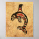 Este diseño único presenta una ballena asesina inspirada en Haida. El patrón nativo representa un diseño tribal de ballena que consiste en líneas fluidas y formas elegantes. Un pequeño pez aparece dentro del cuerpo de la ballena con caras estilizadas dentro de las aletas y la cola. Las texturas gruesas y las grietas grandes dan un aspecto envejecido y gastado. Este hermoso patrón es una representación elegante de esta majestuosa y espiritual criatura.