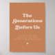 Las generaciones ante nosotros boda firman. Un tema de moda retro: adoptar este diseño tipográfico vintage y elegante para tu papelería boda, con un tema de color azúcares marrones. Fácil de mezclar y emparejar con nuestra papelería similar disponible en naranja quemado, terracota y rosa melocotón.