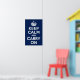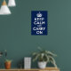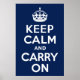 "Mantengan la calma y sigan adelante" contra un azul marino profundo.