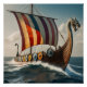 Un magnífico barco de larga duración Viking se desliza a través de agitadas olas, su casco templado testamento de innumerables viajes. La característica más llamativa es la vela ondulante, no hecha de tela sino de un dragón enorme e intrincado. Las alas de la bestia parecen estirarse, atrapando el viento y propulsando el barco hacia adelante. Detalles feroces como los colmillos de paja y una cola enrollada crean una imagen de asombro e inspiran miedo en cualquiera que pueda encontrarlo. Los guerreros vikingos a bordo, sus rostros cubiertos de determinación, están listos para cualquier aventura o batalla que les aguarde en el horizonte.