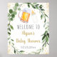 ¡Cada mamá merece un día especial para celebrar! Bienvenido a tu bebé duchado invitados con un adorable cartel personalizado. Enmarcar el signo y mostrarlo en una mesa cerca de la entrada o montar el poster en espuma y mostrarlo al aire libre sobre un caballete. El diseño presenta una vegetación acuática con una botella de cerveza y un Relieve metalizado dorado.