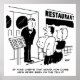El poster del restaurante es gracioso. El hombre quiere saber por qué, si un chef es muy famoso, nunca ha estado en la televisión.