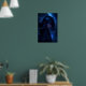 Chica de pelo oscuro y ojos azules brillantes, rodeado de un fondo cósmico azul oscuro. El chica tiene el pelo oscuro, adornado con pequeñas estrellas y galaxias, lo que le da un aspecto místico. Sus ojos son un azul intenso y brillante que coincide con el tema cósmico del fondo. El personaje tiene pendientes grandes y redondos que emiten también una luz azul brillante. El fondo es oscuro y está salpicado de estrellas, nebulosas y galaxias en tonos azules y blancos. Hay una sensación general de misterio y magia en la imagen debido a los elementos cósmicos y la expresión enigmática del personaje.