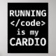 Este divertido diseño de software y desarrollador web de ciencias de la computación dice "ejecutar código es mi cardio".