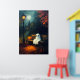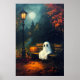 En el tranquilo corazón de un parque otoñal, un espíritu amable encuentra un lugar para descansar. Esta encantadora impresión de arte captura a un fantasma solitario compartiendo un banco con su brillante compañero de farolillos, rodeado de los cálidos colores del otoño. Es la combinación perfecta de lo espeluznante y lo dulce, ideal para añadir un toque mágico y lleno de historias a tu decoración de Halloween. Que este simpático fantasma traiga el espíritu caprichoso de otoño a su casa.