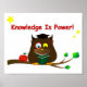 El búho sabio original, vestido con una tassel y leyendo en un árbol con una cita del filósofo inglés Francis Bacon, "¡El conocimiento es el poder!" ¡Genial para los estudiantes y para los amantes de los libros! ¡Regalos únicos para volver a la escuela, graduaciones, eventos escolares y otras ocasiones especiales!