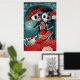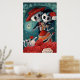 Obra del Día de los Muertos con un par de esqueletos enamorados. Durante la festividad mexicana del Día de Los Muertos, todos celebran - hay mucha danza y canto. Estos esqueletos están en medio de su apasionada danza, entre flores y cráneos de azúcar bajo la brillante luna. Para ellos también es un día de amantes. Esta romántica obra de arte del Día de Los Muertos es un regalo perfecto para los amantes.