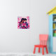 Una pareja de anime biracista y dulce que se abraza con notas musicales y corazones en púrpura y rosa.