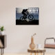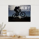 Proverbio japonés - "¡El día que decidas hacerlo es tu día de suerte!" Poster con bicicleta de montaña, silueta de estilo foto con sol detrás, oscuro primer plano, escena de acción con agua y luz solar. ¡Motivación, inspiración, impulso, éxito! ¡Puedes hacerlo! Este poster se ve estupendo en sala de estar, dormitorio, habitaciones para niños, habitación familiar, gimnasio, garaje, tienda de bicicletas, donde quiera que quieras. Toma el día.