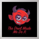 Vector personalizado ilustracion de un diablillo diabólico adorable con ojos grandes con el texto El diablo me hizo hacerlo. Palabras clave: diablo, infierno, lindo, demonio, malvado, satán, halloween, monstruo, cuernos, horror, adorable, dulce, diabólico, diabólico, diabólico, adorable, atractivo, encantador, delicioso, querido, querido, ganador, ganador, encantador, encantador, atractivo, bonito, adorno