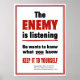 Póster El enemigo está escuchando - Segunda Guerra Mundia