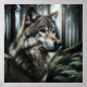 Descubra la mística del bosque con el poster "El lobo enigmático del bosque", con una cautivadora mezcla de lobo negro, marrón y blanco en su hábitat natural. Perfecto para los amantes de la vida silvestre y del arte por igual.