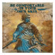 Este detallado diseño gráfico abstracto presenta a un guerrero afroamericano de raza negra en batalla sosteniendo sus dos espadas en un concepto de fantasía, representado con precisión y habilidad en parte hecha con tecnología de IA. Acompañar el diseño es una cita motivadora: "SEA CÓMODO EN TU PROPIA PIEL".