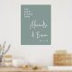 Este sencillo y elegante cartel marco es la forma perfecta de dar la bienvenida a sus invitados a su boda con un toque de elegancia y estilo. Con las palabras "El fiesta empieza ahora" en letras modernas de bloques blancos, con sus nombres en una hermosa tipografía manuscrita y su fecha boda, todo ello contra un suave fondo verde eucalipto, esta señal seguramente hará una impresión duradera. Perfecto para su exhibición en un lugar destacado en su ceremonia, hora de cóctel o recepción, puede ser fácilmente enmarcado como un recuerdo después de su día especial. Con su moda y su diseño moderno, este poster con un toque de elegancia en la decoración boda es un lugar ideal para una celebración que los clientes no olvidarán.