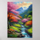 Eleva tu espacio con el atractivo cautivador de un poster mostrando una fascinante obra de arte digital. Se despliega una escena pintoresca: un río cristalino se adentra en un valle sereno, sus aguas reflejan la claridad de la naturaleza. Los árboles coloridos adornan ambas orillas, y el valle cobra vida con la belleza de los árboles de sakura en plena floración. Este poster combina armoniosamente colores vivos y el movimiento relajante del agua, invitándonos a sumergirse en la tranquila belleza de la obra maestra de la naturaleza.