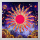 "El fuego bailarín del Cosmos" El Sol. Los hipnóticos remolinos y las llamaradas doradas del sol dan la ilusión de movimiento, como si las llamas solares estuvieran vivas. Una intrincada obra maestra que celebra la energía, el calor y el equilibrio celestial con colores rojo, naranja, amarillo y azul.