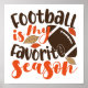 La frase "El fútbol es mi temporada favorita" se asocia comúnmente con varias prendas de vestir y mercaderías que celebran la cultura futbolística, particularmente en el otoño, cuando la temporada de fútbol está en pleno apogeo.