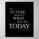 El futuro depende de lo que hagas hoy en día - inspiradora cita motivacional poster, en un diseño tipográfico elegante de colores negros y blancos, perfecto para tu oficina, tu gimnasio o tu casa. Tenga en cuenta que puede cambiar el tamaño del poster a más pequeño si prefiere un poster más pequeño - sólo tiene que mantenerlo en la misma proporción a 16x20 pulgadas, por ejemplo, 8 x 10 pulgadas se ajustarán bien en un fotograma estándar. Esta cita inspiradora es de Mahatma Gandhi. Para más inspiradores posters de citas, posters de tipografía geniales y regalos interesantes y elegantes, visita: http://www.zazzle.com/bangingifts