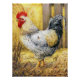 Hermoso gallo blanco y negro que recorre el heno, perfecto para la decoración de campo. Óleo pastel y pintura a lápiz de colores de Paxdomino.