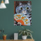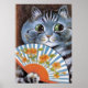 Un poster para los amantes del gato y los fans de la maravillosa y caprichosa obra del famoso artista felino inglés Louis Wain. La pintura muestra a una adorable tabby cat hembra con grandes ojos verdes sosteniendo un ventilador de rayas azules y blancas adornado con flores naranjas en la cara. Ella parece incierta consigo misma y un poco tímida. Tal vez sea su debut en la ópera entre los adultos. El poster sería el regalo perfecto para los admiradores de Wain y del arte de los gatos vintage.