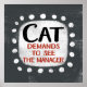 Un diseño tipográfico tipográfico lindo y divertido que dice "El gato exige ver al director". Presenta texto en negro y rojo sobre un rectángulo blanco con puntos blancos divertidos y juguetones rodeándolo, todo sobre un fondo gris.