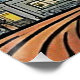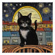 A.I. creó la impresión de un cielo estrellado y nocturno iluminado con un gato negro en primer plano, frente a un paisaje de pintorescos edificios de aldeas y coloridas casas.