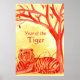 Un poster del Año Nuevo Chino del Tigre, con un tigre sentado pacíficamente cerca de un árbol pintado de rojo brillante con fondo de color amarillo dorado en el agua.