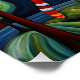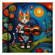 A.I. creó la impresión de un gato musical de pie vestido con ropas vibrantes tocando un violín en medio de un paisaje surrealista con árboles giratorios y un sol radiante.