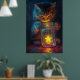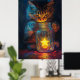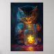 Debajo del vasto y misterioso cielo nocturno, un curioso felino agarra un frasco con una brillante estrella. Sus ojos brillan con fascinación, ¿busca mantener la estrella para siempre, o está pensando en liberarla? Esta obra de arte captura maravillosamente la esencia del asombro, el anhelo y el delicado equilibrio entre aferrarse a los sueños y dejarlos volar.
