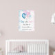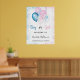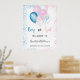 Un cartel de bienvenida para un género revela fiesta. Un fondo blanco moda. Decorada con globos purpurinas y azules, rosa y blanco, y polvo purpurina falso azul y rosa. Personaliza y agrega el nombre de los padres. El nombre y el texto: El niño o Chica están escritos con un guión de estilo escrito a mano