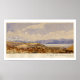 Pintura acuática que representa el Gran Lago Salino desde lejos, con colinas y montañas cubiertas de nieve más allá.