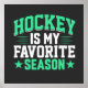 Poster de hockey con texto verde y blanco sobre fondo negro dice ¡El hockey es mi temporada favorita!