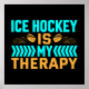 Poster de temas de hockey con pollas de hockey y texto que dice Hockey sobre hielo es mi terapia!
