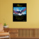 Un majestuoso águila calva, con un pico agudo y una mirada penetrante, se alza audazmente contra un fondo negro profundo. Una dinámica bandera estadounidense ondea detrás de ella, sus colores vibrantes que le dan un sentido de movimiento y vitalidad. La palabra "honor" corona la composición en elegante cursiva amarilla, simbolizando respeto y dignidad. La frase atemporal de Aristóteles — "La dignidad no consiste en poseer honores, sino en merecerlos" — se coloca más abajo, con cuidado, mejorando el mensaje de sabiduría. Este diseño llamativo celebra la fuerza, el patriotismo y una profunda conexión con las ideas filosóficas, ofreciendo un tributo visualmente convincente a los valores nobles.