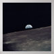 Una vista de la Tierra sobre el horizonte lunar fotografiada desde el módulo lunar Apolo 10, mirando hacia el oeste en dirección al viaje. El módulo lunar en el momento en que se tomó la foto estaba situado sobre las tierras altas lunares a unos 105 grados de longitud este.