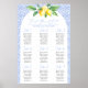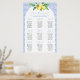 Una moderna y elegante tabla de asientos con temática italiana de Positano azul. Perfecto para tablas de asientos de hasta 9 tablas.