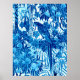 Póster El loro en la jungla, azul índigo y blanco