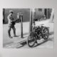 Cartero estadounidense y su motocicleta Merkel Volador. Foto antigua tomada entre 1909 y 1940.
